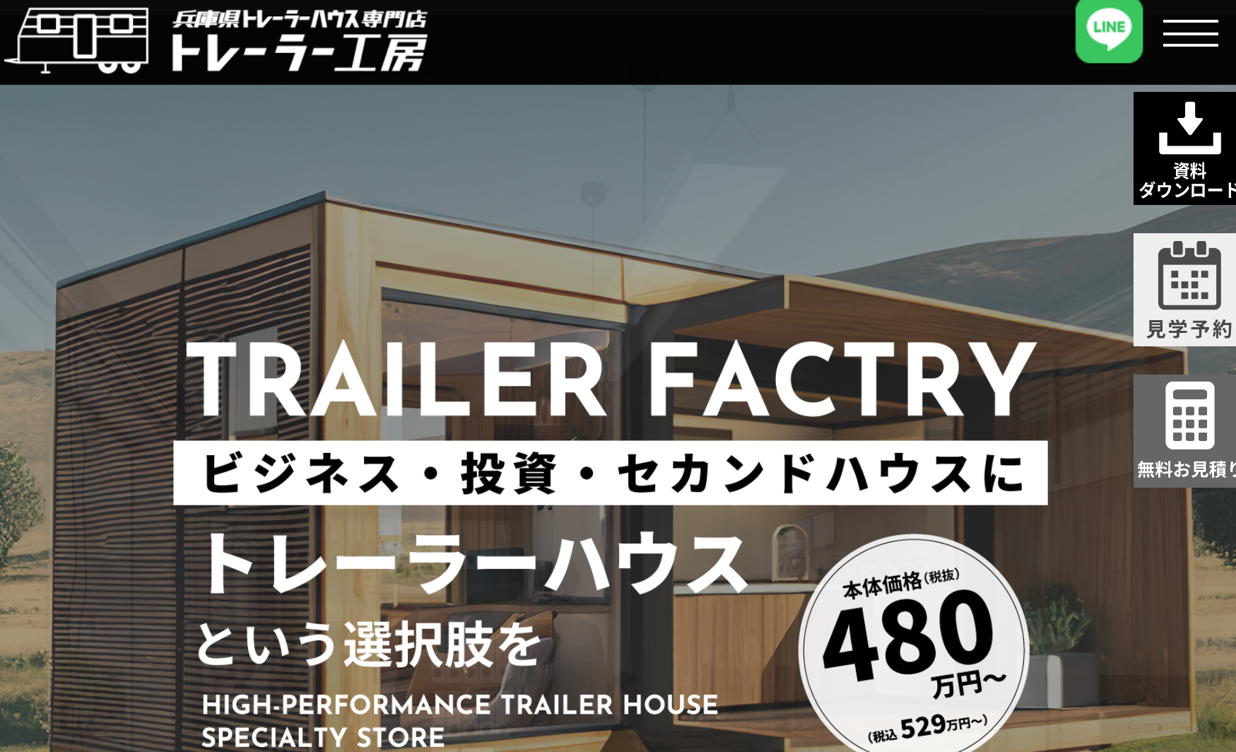 インパクトはもちろん、検索意図などを考慮したおしゃれなでかっこいいデザインであり、トレーラーハウスという魅力を最大限に引き出しています。
